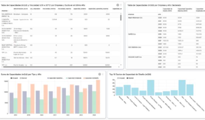 Producción de hidrocarburos, transporte por ductos y terminales marítimas, productos procesados y subproductos obtenidos.